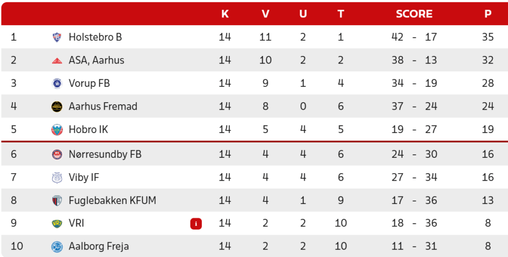 Stillingen i Danmarksseriens Pulje 4 efter lørdagens kampe: