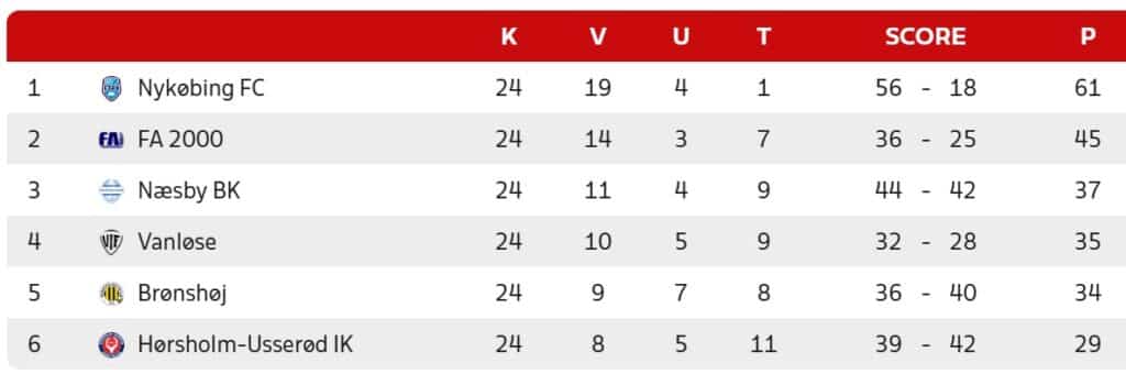Stillingen i 3. Divisions Oprykningsspil efter lørdagens kampe: