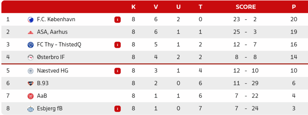 Målscorer: 6. min. 0-1 Cecilie Byrnak, 29. min. 0-2 Thea Rhode, 32. min. 0-3 Frederikke Trolle Thomsen, 39. min. 0-4 Thea Rhode, 45. min. 0-5 Frederikke Trolle Thomsen, 48. min. 0-6 Frederikke Trolle Thomsen, 89. min. 0-7 Josephine Lech.