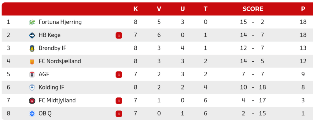 Fortuna Hjørring tog en stor sejr over Kolding IF. Mens Brøndby IF og FC Nordsjælland delte
