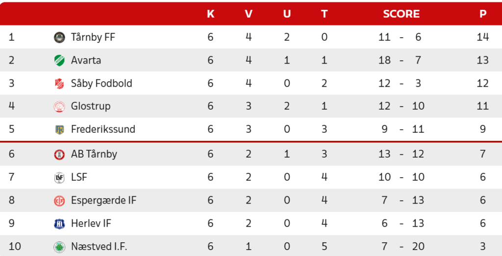 Stillingen i Danmarksserien Pulje 2 efter weekendens kampe: