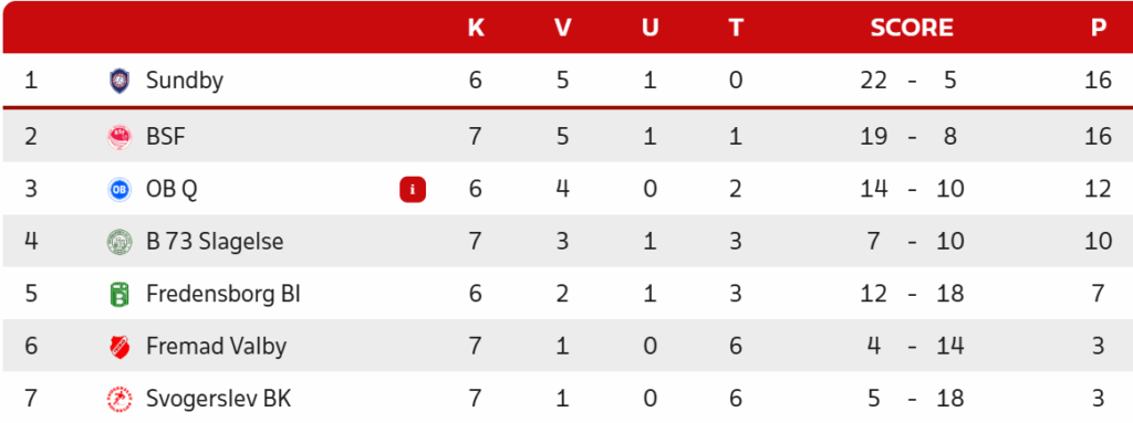 Stillingen i C-Ligaen Pulje 2 efter lørdagens kampe: