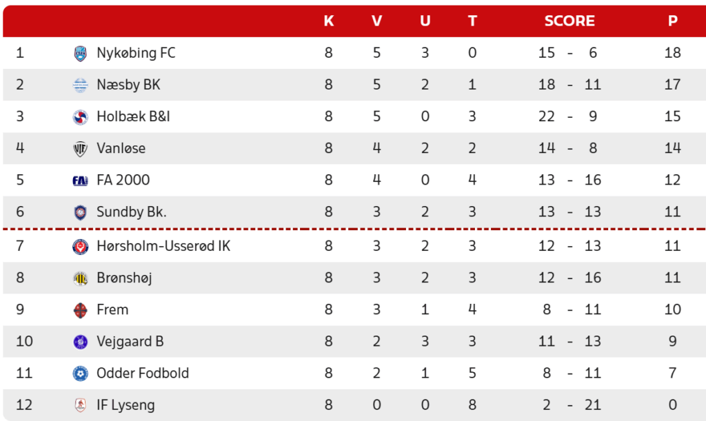 Målscorer: 20. min. 0-1 Pierre Dahlin Larsen, 22. min. 0-2 Victor Faaborg Christensen, 45. min. 1-2 Mads Jul Jørgensen, 54. min. 2-2 Mads Jul Jørgensen (str.), 85. min. 3-2 Julius Hamburger-Toft, 87. min. 3-3 Nikola Stojanovic.