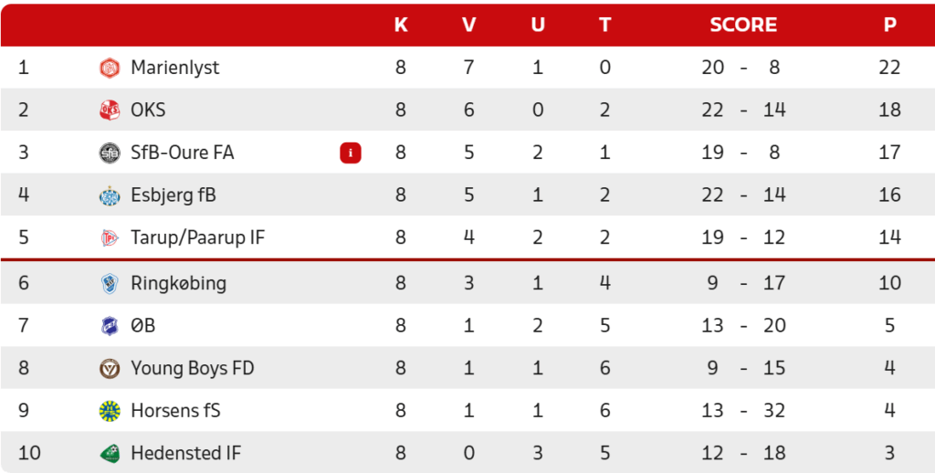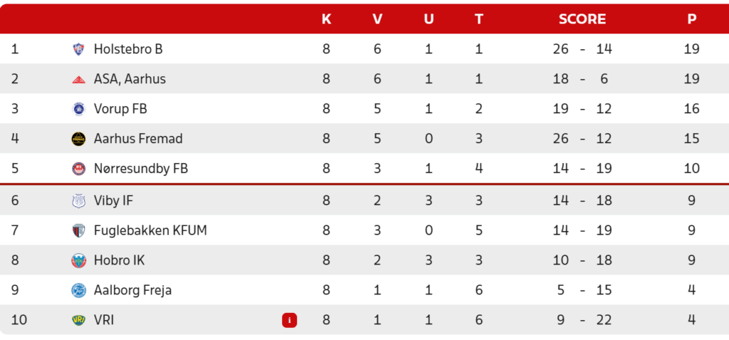 Stillingen i Danmarksseriens Pulje 4 efter lørdagens kampe: