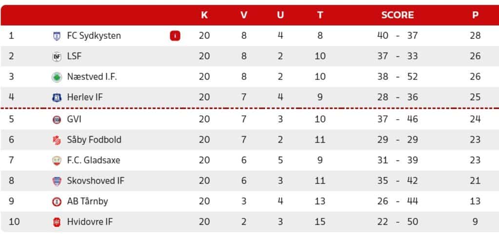 Stillingen i Danmarksseriens Kvalifikationsspil Pulje 2 efter lørdagens kampe: