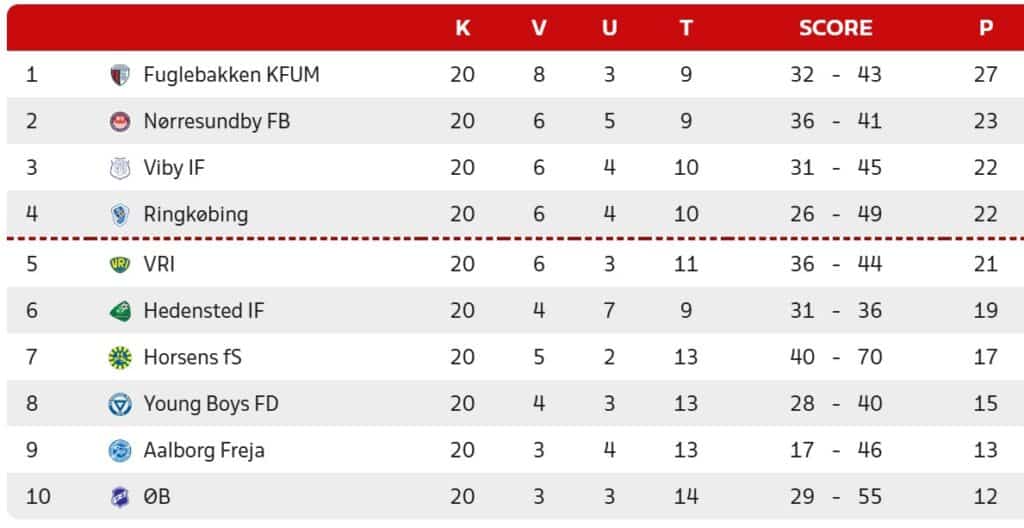 Stillingen i Danmarksseriens Kvalifikationsspil Pulje 1 efter lørdagens kampe: