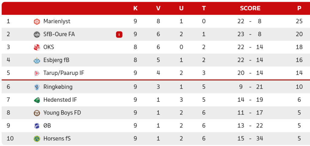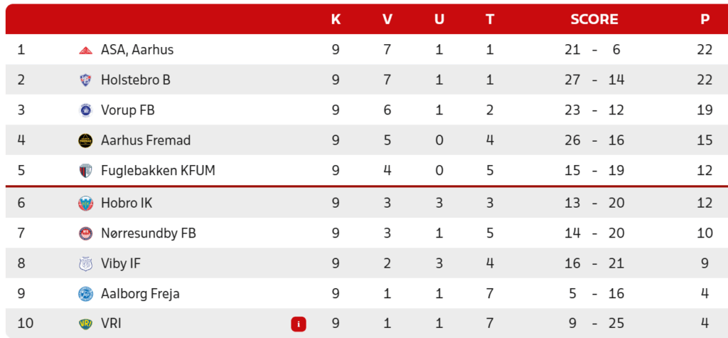 Stillingen i Danmarksseriens Pulje 4 efter lørdagens kampe: