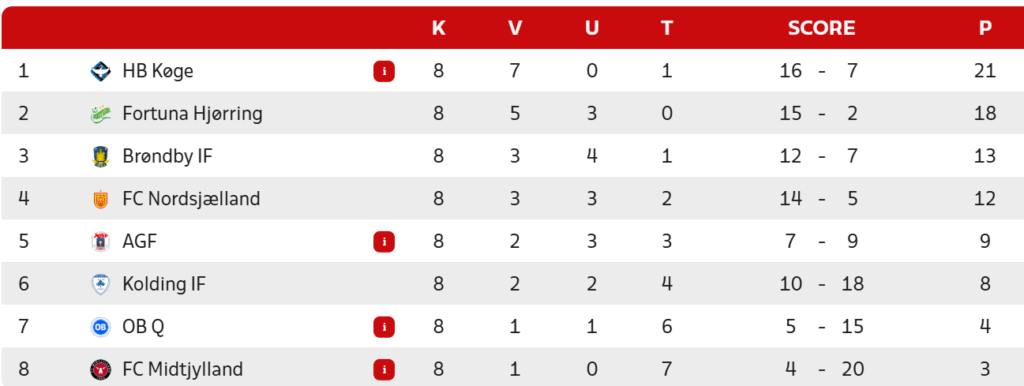 Fortuna Hjørring tog en stor sejr over Kolding IF. Mens Brøndby IF og FC Nordsjælland delte