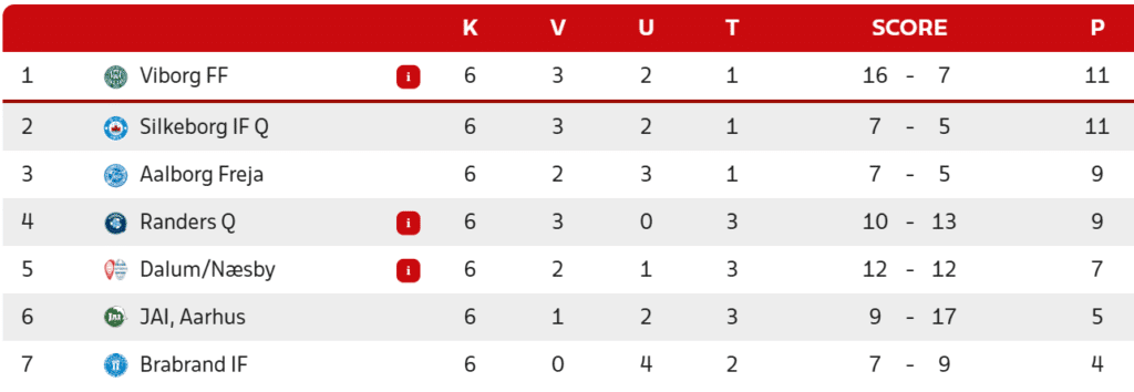 Målscorer: 3. min. 1-0 Marika Skov, 8. min. 2-0 Marika Skov, 36. min. 2-1 Emilie Mehlum, 46. min. 2-2 Kathrine Bukhave, 62. min. 3-2 Rikke Bøttcher, 66. min. 3-3 Alberte Greinert Friis, 68. min. 3-4 Camille Hoffmann Nielsen, 90. min. 3-5 Emilie Mehlum.