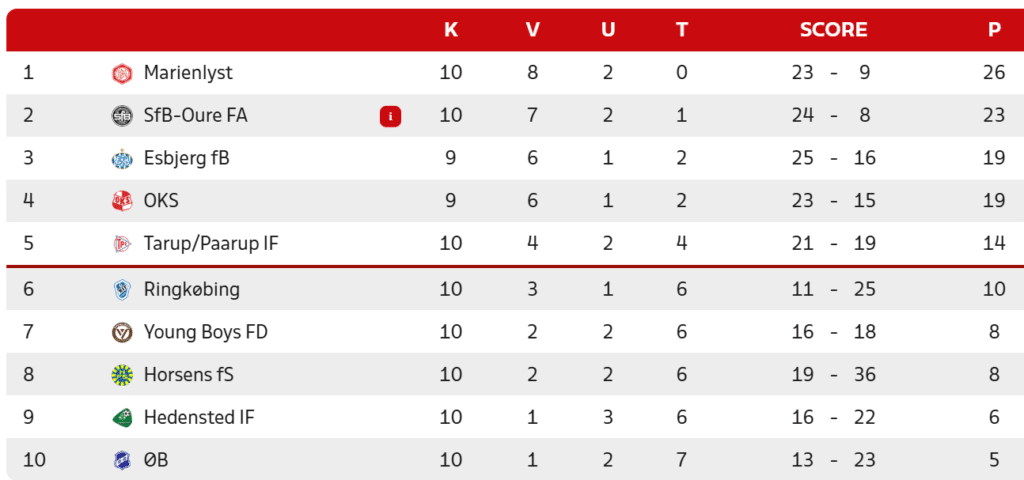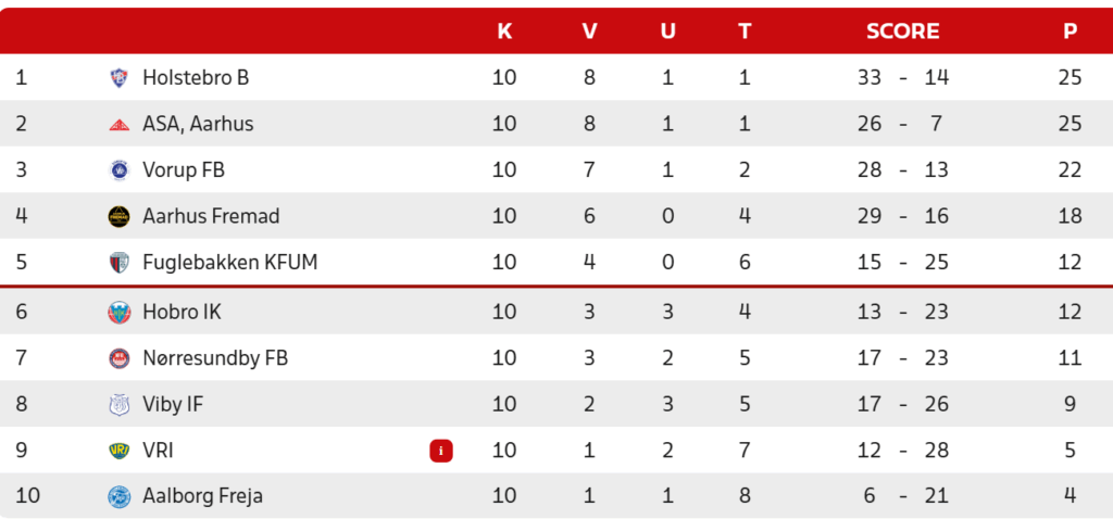 Stillingen i Danmarksseriens Pulje 4 efter lørdagens kampe: